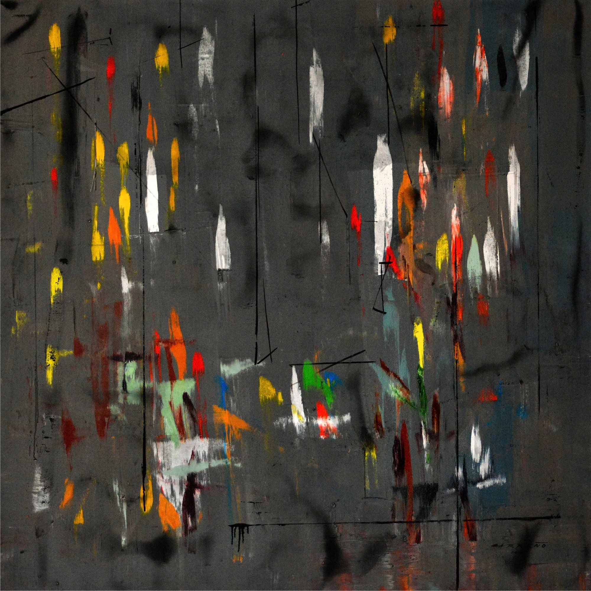 Since my first introduction, Carreño’s style has changed, but the essence of his work remains. It is always dynamic and engaging. Inspired by the universe, many of his early works are texturally complex. He frequently used natural and man-made materials such as sand, sawdust, and ground paper as a foundation for the paintings’ tactility.